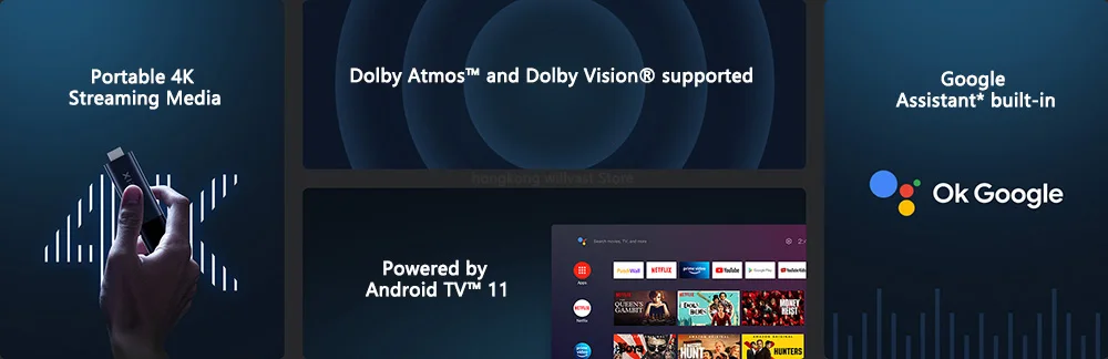 | Portable 4K Streaming Media | Dolby Atmos™ and Dolby Vision® supported | OK Google Assistant* built-in |